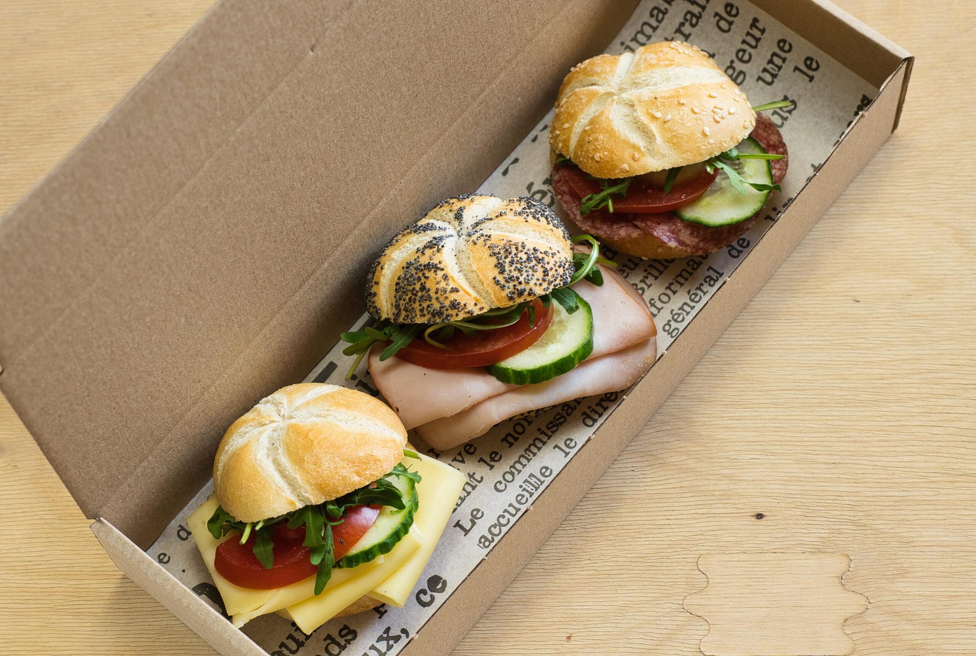 A szendvicseket kulturált papír dobozban szállítjuk, amiben a tálalás is megoldható.
