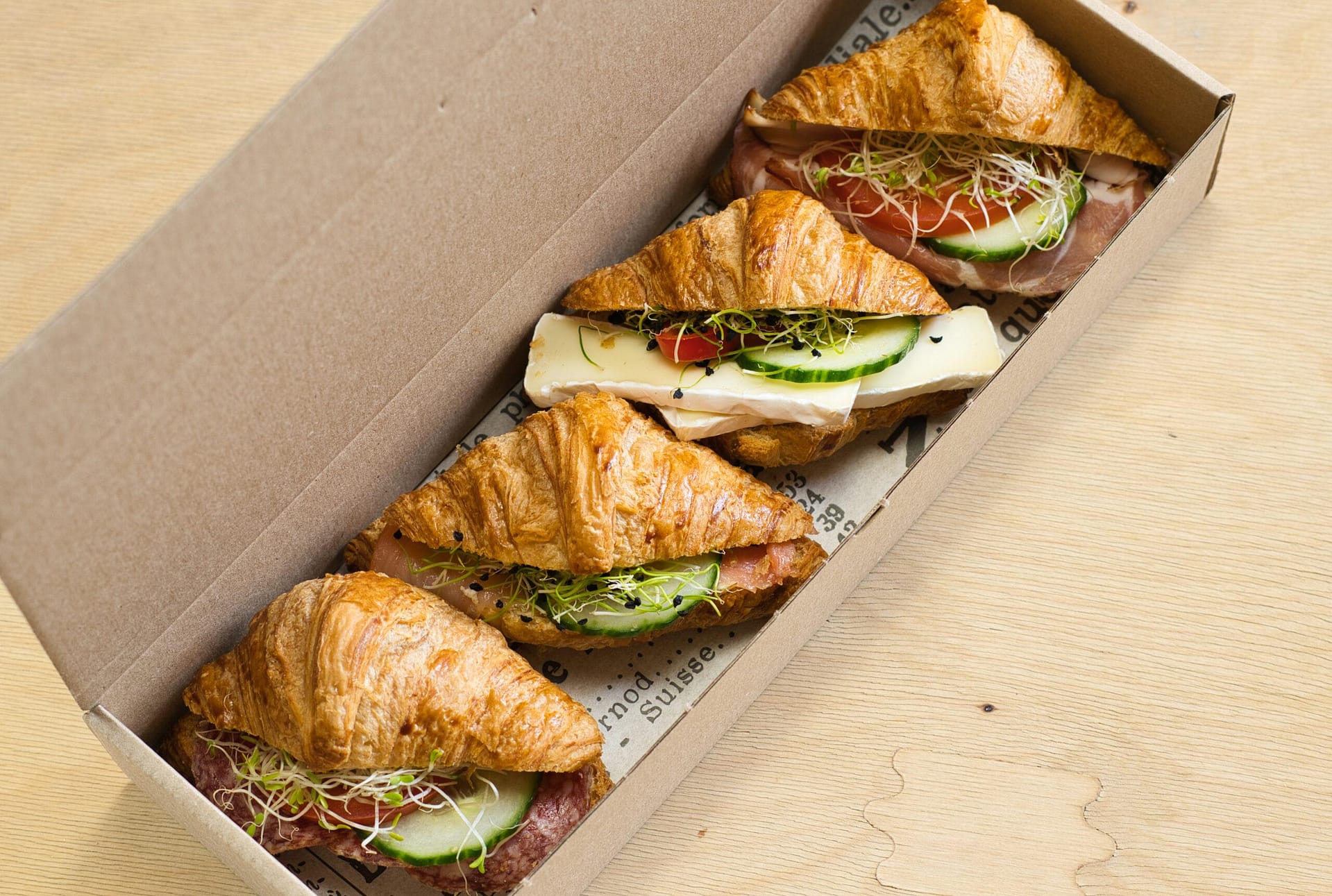 Egyszemélyes Mini Croissant szendvics box, amely 4 db friss szendvicset tartalmaz.